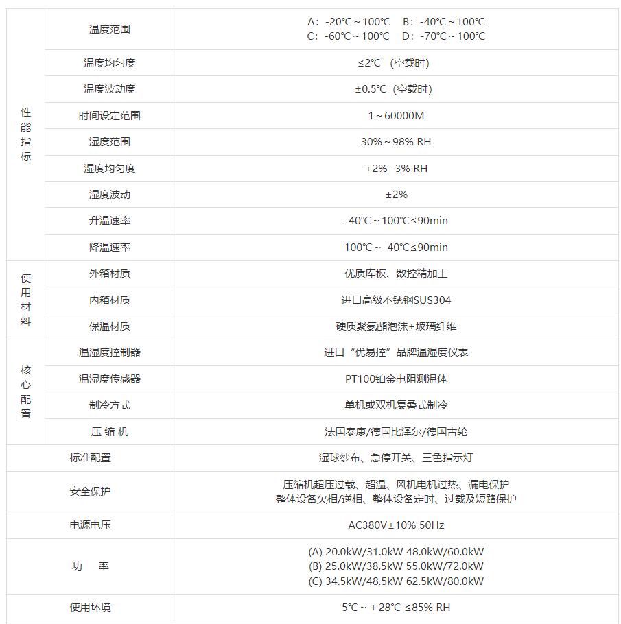 | 降溫速率 | 100℃~-40℃≤90min | ||||
