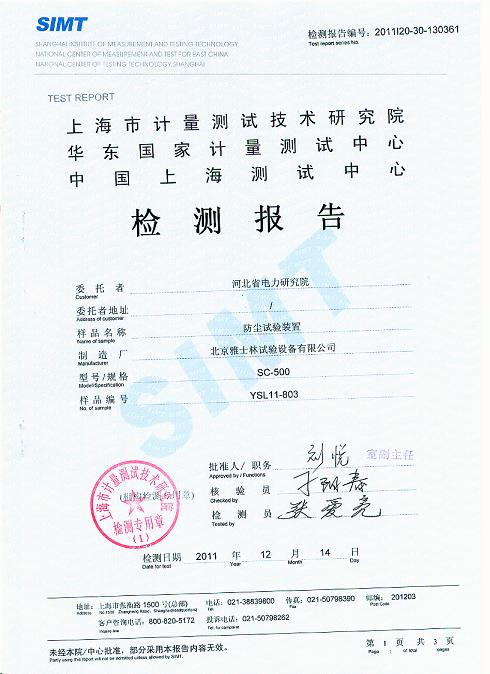 >>砂塵試驗箱檢測報告-上海計量院-河北電科院