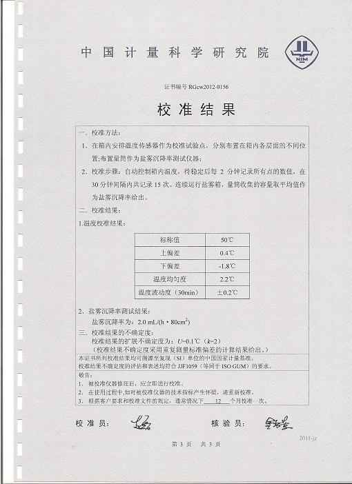 >>鹽霧腐蝕試驗(yàn)箱校準(zhǔn)證書(shū)-中國(guó)計(jì)量院-江河幕墻