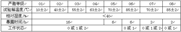 條件試驗(yàn)12方法:溫?zé)幔ㄏ聢D為條件試驗(yàn)方法12溫?zé)岬膰?yán)酷等級表)