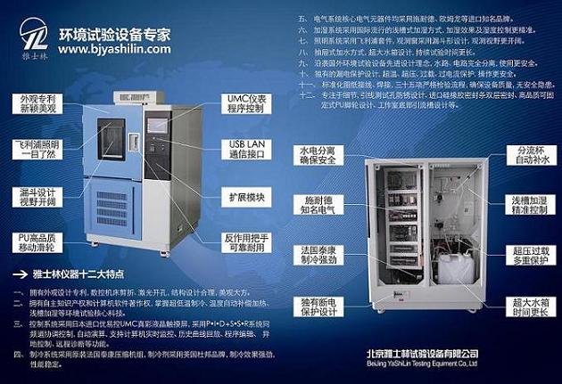 寶劍鋒從磨礪出,梅花香自苦寒來。雅士林儀器持續(xù)創(chuàng)新,開發(fā)最前沿的測試技術(shù),使雅士林的產(chǎn)品肯有更加大的生命力。雅士林儀器定位于中高端客戶群,高品質(zhì)、高性能高低溫交變濕熱試驗(yàn)箱系列的產(chǎn)品特點(diǎn): 1、擁有外觀設(shè)計(jì)專利,數(shù)控機(jī)床剪折、激光開孔,結(jié)構(gòu)設(shè)計(jì)合理,新穎美觀。 2、擁有自主知識產(chǎn)權(quán)和計(jì)算機(jī)軟件著作權(quán),掌握超低溫制冷、溫度自動補(bǔ)償加熱、淺槽加濕等環(huán)境試驗(yàn)核心科技。 3、控制系統(tǒng)采用日本進(jìn)口優(yōu)易控UMC系列7英寸高清真彩液晶觸摸顯示屏,溫度控制采用P•I•D+S•S•R系統(tǒng)同頻道協(xié)調(diào)控制,自動演算的功能,支持電腦實(shí)時監(jiān)控、歷史曲線回放、程序編輯、遠(yuǎn)程診斷等功能。 4、制冷系統(tǒng)采用原裝法國泰康壓縮機(jī)組,制冷劑采用美國杜邦品牌,制冷效果強(qiáng)勁,性能穩(wěn)定。 5、電氣系統(tǒng)核心電氣元器件均采用施耐德、歐姆龍等進(jìn)口知名品牌。 6、加濕系統(tǒng)采用國際流行的淺槽式加濕方式,加濕效果及濕度控制更精準(zhǔn)。 7、照明系統(tǒng)采用飛利浦套件,觀測窗采用漏斗形設(shè)計(jì),觀測視野更開闊。 8、抽屜式加水方式,超大水箱設(shè)計(jì),持續(xù)試驗(yàn)時間更長。 9、沿襲國外環(huán)境試驗(yàn)設(shè)備先進(jìn)設(shè)計(jì)理念,水路、電路完全分離,使用更安全。 10、獨(dú)有的漏電保護(hù)設(shè)計(jì),超溫、超壓、過載、過電流保護(hù),操作更安全。 11、標(biāo)準(zhǔn)化圖紙接線、焊接,三十五項(xiàng)嚴(yán)格檢驗(yàn)流程,確保設(shè)備質(zhì)量,無安全隱患。 12、專注于細(xì)節(jié),引線測試孔防銹設(shè)計(jì)、進(jìn)口硅橡膠密封條雙層密封、高品質(zhì)可固定式PU腳輪設(shè)計(jì)、工作室底部引流槽設(shè)計(jì)等。 全國免費(fèi)服務(wù)電話:4006 400 998 |
