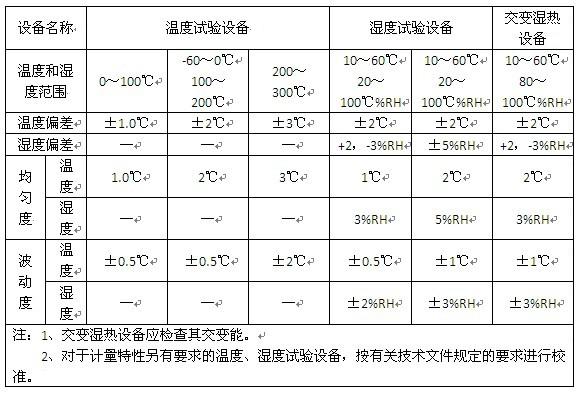 高低溫系列試驗(yàn)箱出廠前廠家都會(huì)自帶一份內(nèi)部檢測(cè)報(bào)告,如內(nèi)部檢測(cè)報(bào)告不能滿足用戶要求時(shí),可請(qǐng)計(jì)量院上門(mén)對(duì)設(shè)備進(jìn)行檢測(cè)并出具檢測(cè)報(bào)告(需付費(fèi))。計(jì)量院會(huì)對(duì)高低溫系列試驗(yàn)箱的溫度偏差、溫度均勻度、溫度波動(dòng)度,相對(duì)濕度偏差、相對(duì)濕度均勻度、相對(duì)濕度波動(dòng)度進(jìn)行計(jì)量,其技術(shù)要求如下: