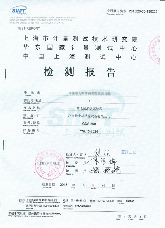 ·高低溫濕熱試驗(yàn)箱檢測(cè)報(bào)告模板下載--上海計(jì)量院
